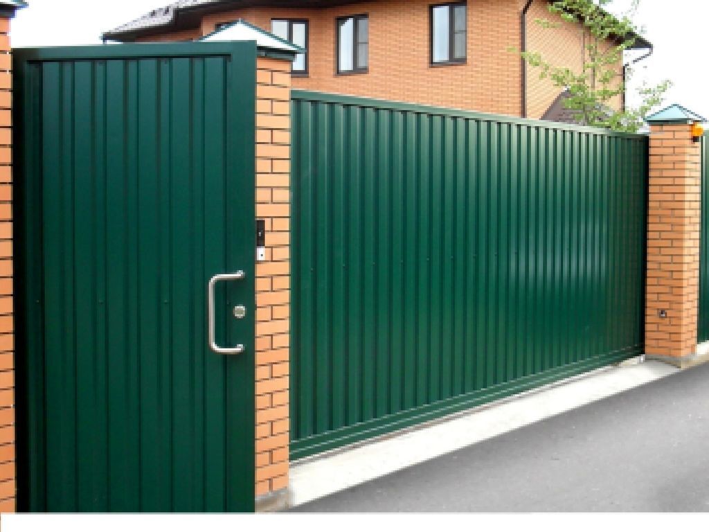 Откатные ворота из профнастила с встроенной калиткой и автоматикой